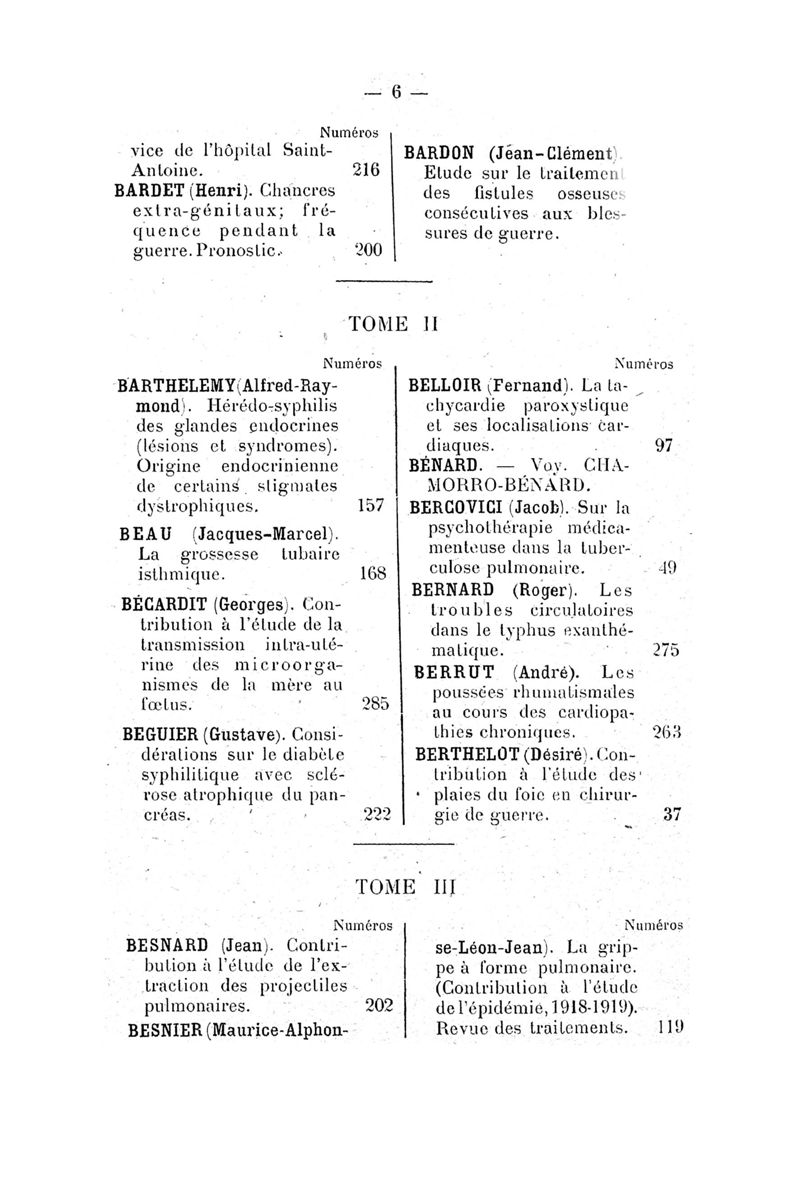 Tables (la première des noms des auteurs, et la seconde des matières) des thèses soutenues à la Faculté de Médecine de Paris, pendant l'année scolaire 1918-1919
