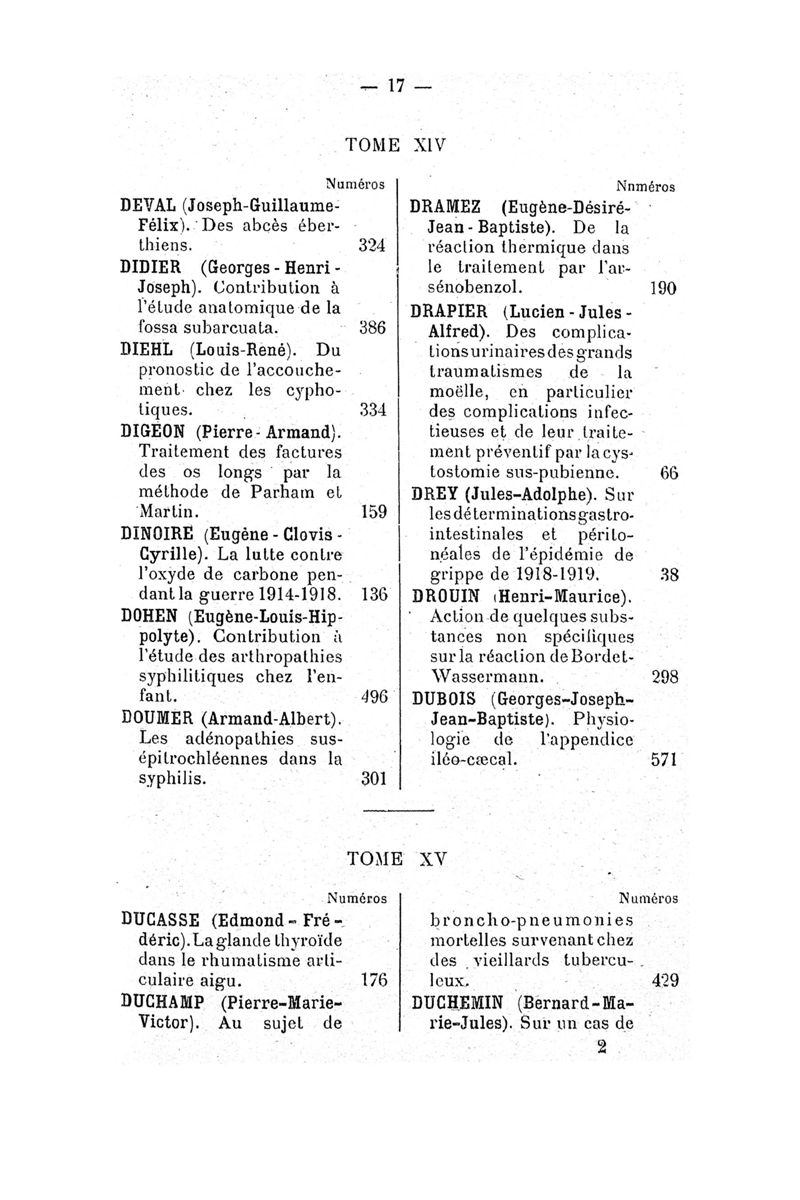 Tables (la première des noms des auteurs, et la seconde des matières) des thèses soutenues à la Faculté de Médecine de Paris, pendant l'année scolaire 1919-1920