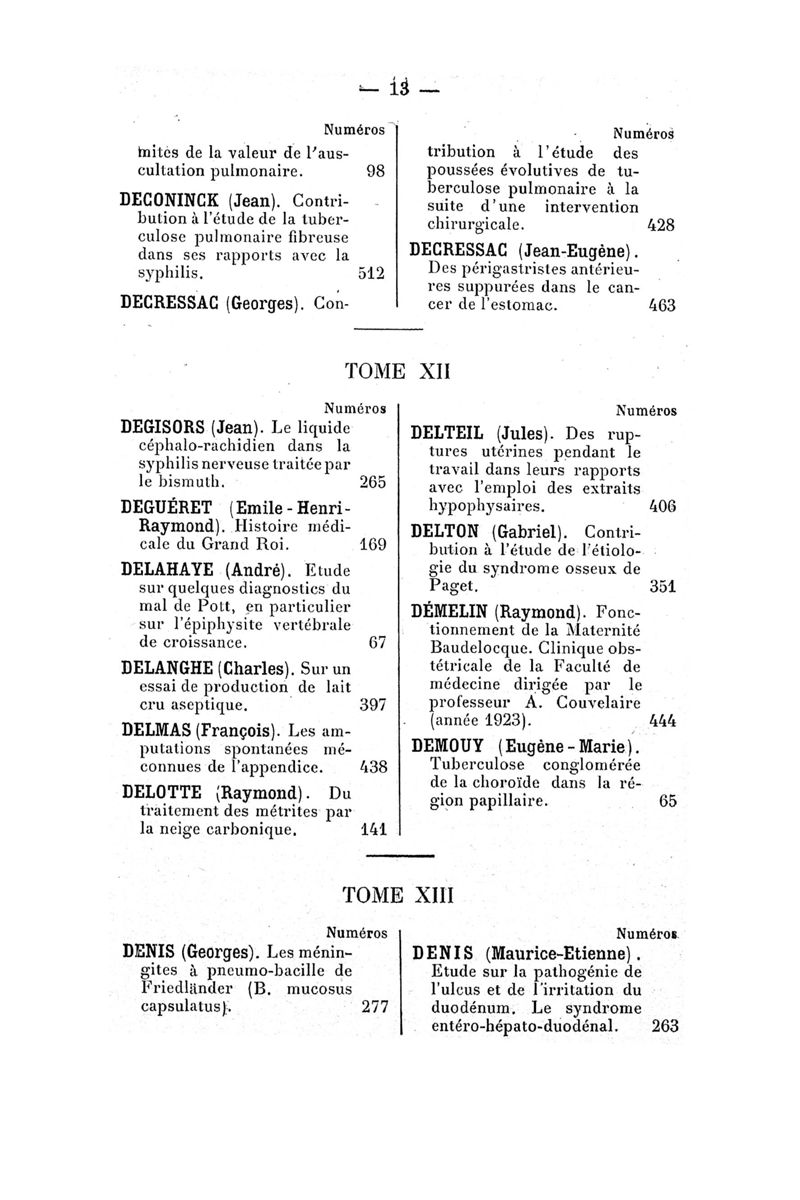 Tables (la première des noms des auteurs, et la seconde des matières) des thèses soutenues devant la Faculté de Médecine de Paris en 1924