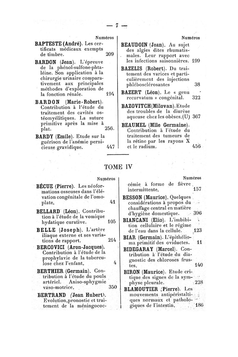 Tables (la première des noms des auteurs, et la seconde des matières) des thèses soutenues devant la Faculté de Médecine de Paris en 1924