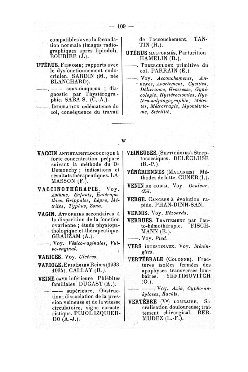 Tables (la première des noms des auteurs, et la seconde des matières) des thèses soutenues devant la Faculté de Médecine de Paris en 1935