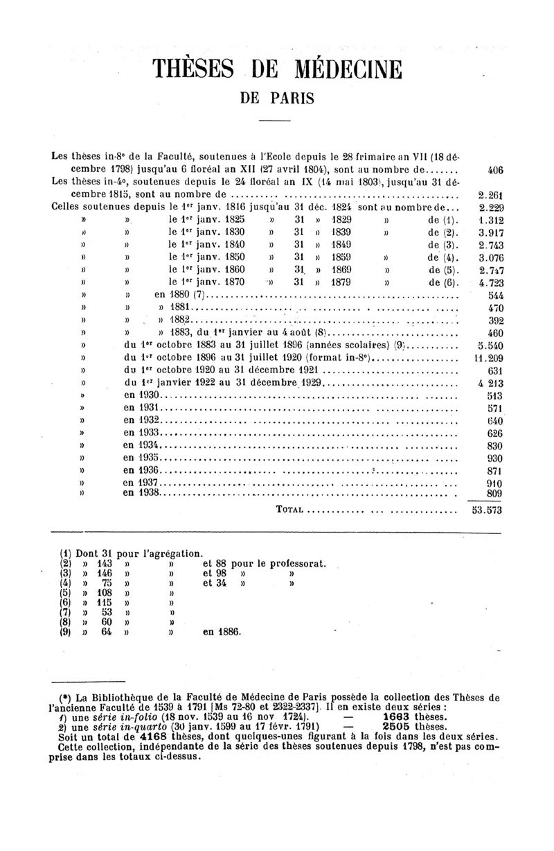 Tables des thèses soutenues devant la Faculté de médecine de Paris en 1938 publiées par les soins du Docteur André Hahn…