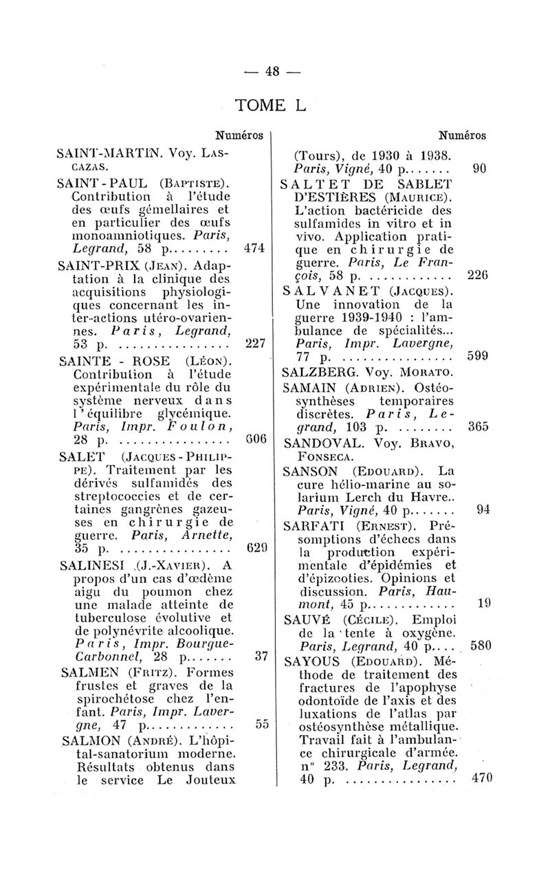 Tables des thèses soutenues devant la Faculté de médecine de Paris en 1940 publiées par les soins du Docteur André Hahn…