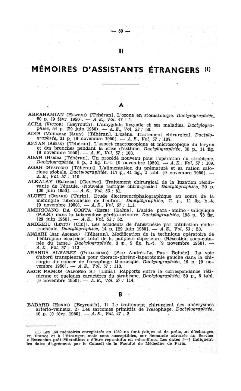 Tables des thèses soutenues devant la Faculté de médecine de Paris en 1950 publiées par les soins du Docteur André Hahn…, avec la collaboration de Mlle G. Le Noir…