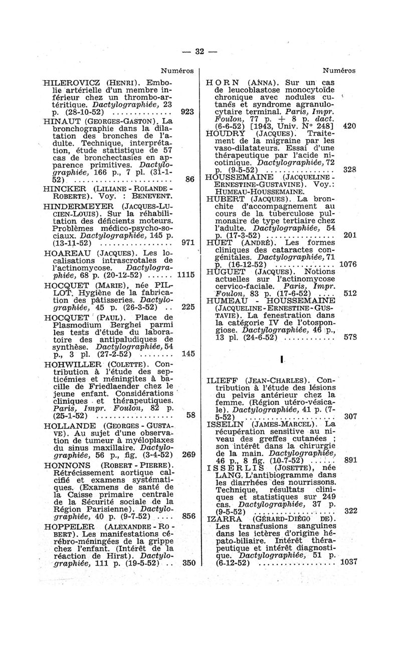 Tables des thèses soutenues devant la Faculté de médecine de Paris en 1952 publiées par les soins du Docteur André Hahn…, avec la collaboration de Mlle G. Le Noir…
