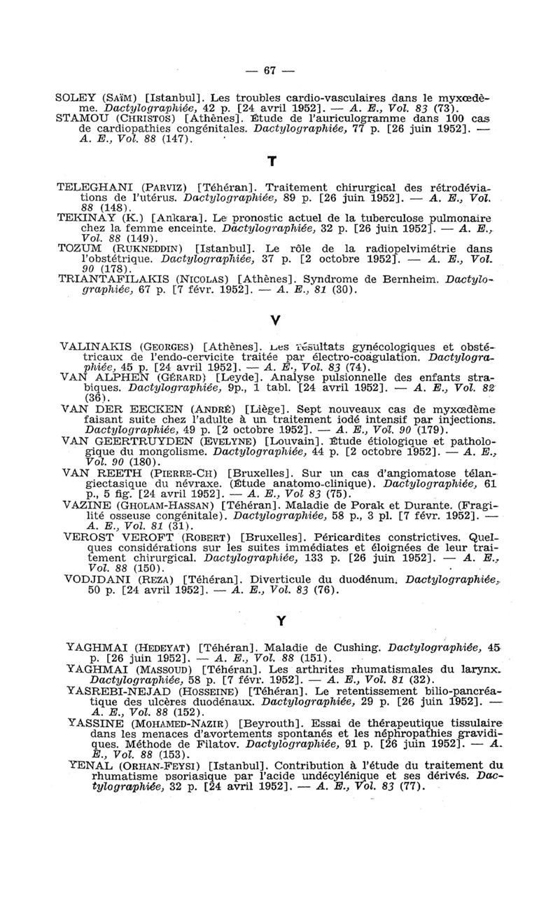 Tables des thèses soutenues devant la Faculté de médecine de Paris en 1952 publiées par les soins du Docteur André Hahn…, avec la collaboration de Mlle G. Le Noir…