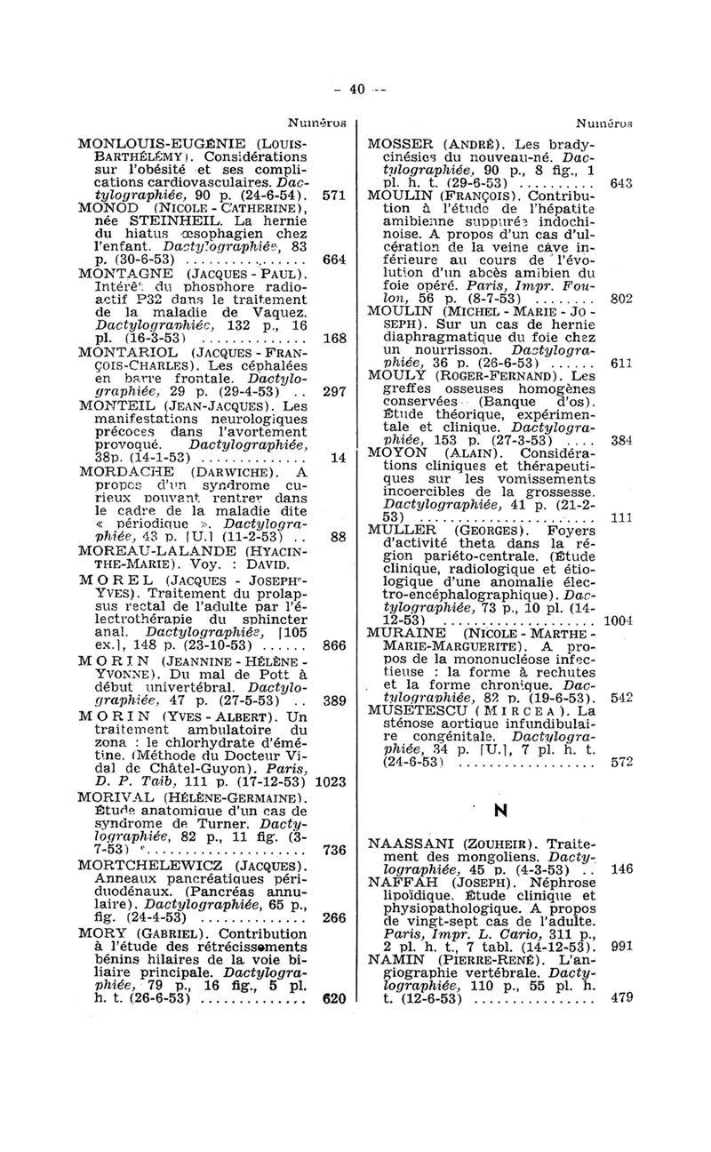 Tables des thèses soutenues devant la Faculté de médecine de Paris en 1953 publiées par les soins du Docteur André Hahn…, avec la collaboration de Mlle G. Le Noir…