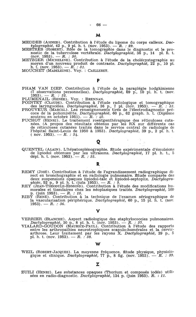 Tables des thèses soutenues devant la Faculté de médecine de Paris en 1953 publiées par les soins du Docteur André Hahn…, avec la collaboration de Mlle G. Le Noir…