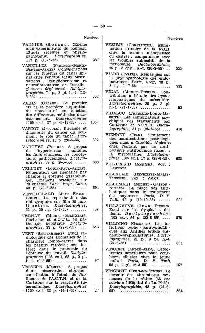 Tables des thèses soutenues devant la Faculté de médecine de Paris en 1955 publiées par les soins du Docteur André Hahn…, avec la collaboration de Mlle G. Le Noir…