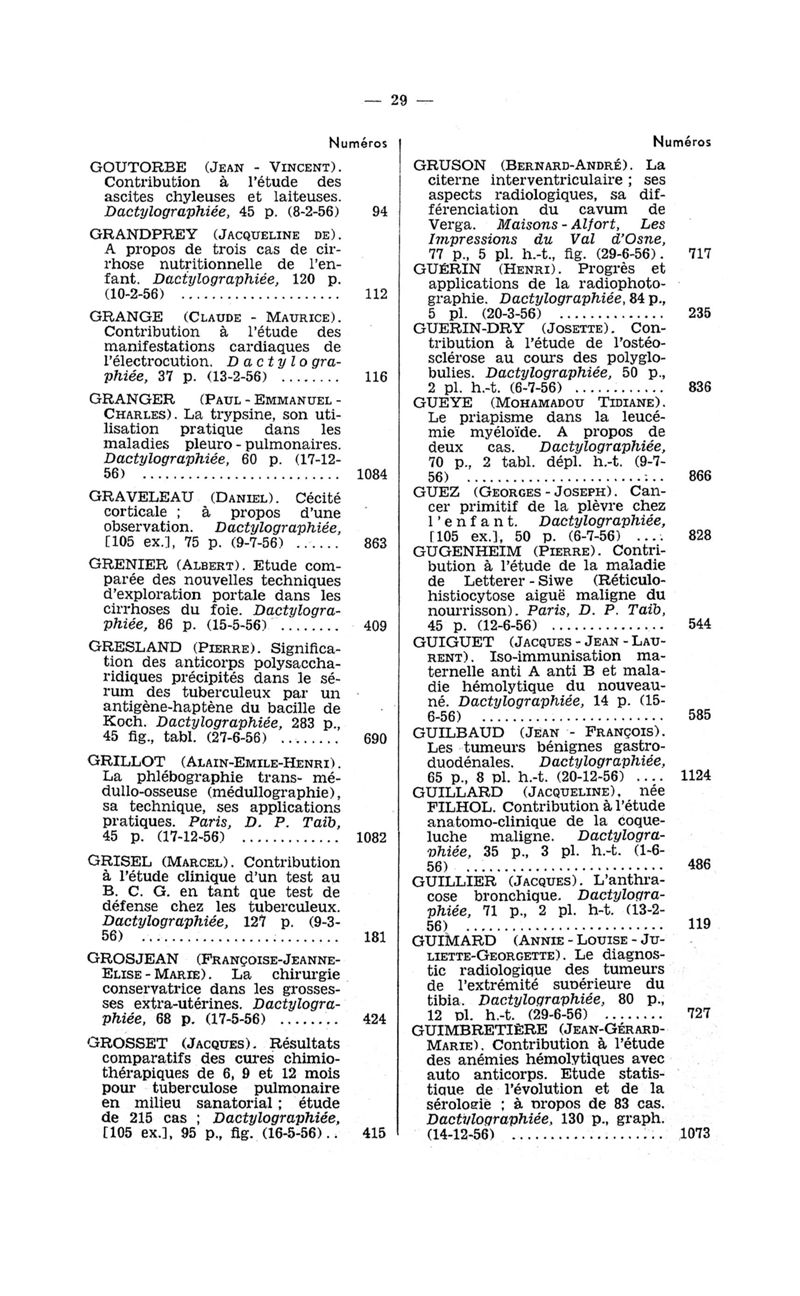 Tables des thèses soutenues devant la Faculté de médecine de Paris en 1956 publiées par les soins du Docteur André Hahn…, avec la collaboration de Mlle G. Le Noir…