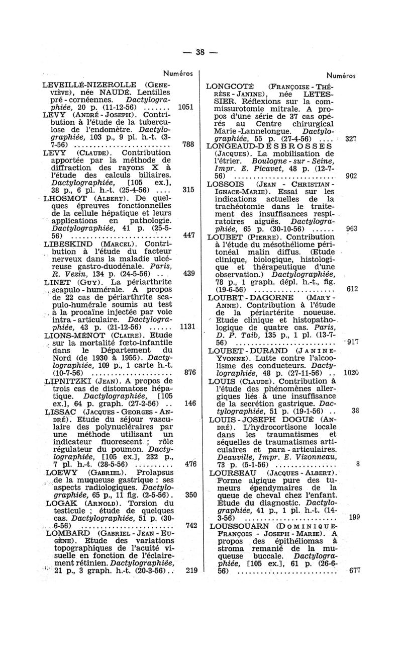 Tables des thèses soutenues devant la Faculté de médecine de Paris en 1956 publiées par les soins du Docteur André Hahn…, avec la collaboration de Mlle G. Le Noir…