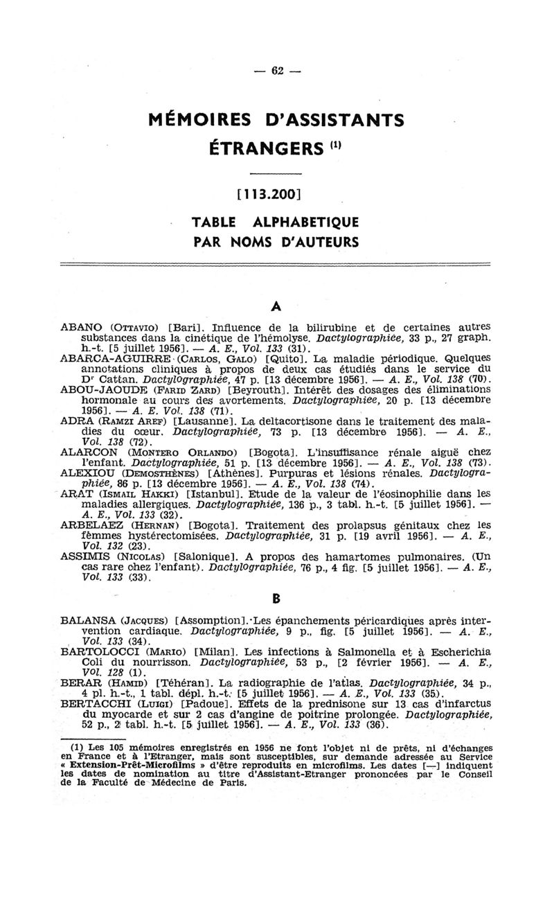 Tables des thèses soutenues devant la Faculté de médecine de Paris en 1956 publiées par les soins du Docteur André Hahn…, avec la collaboration de Mlle G. Le Noir…