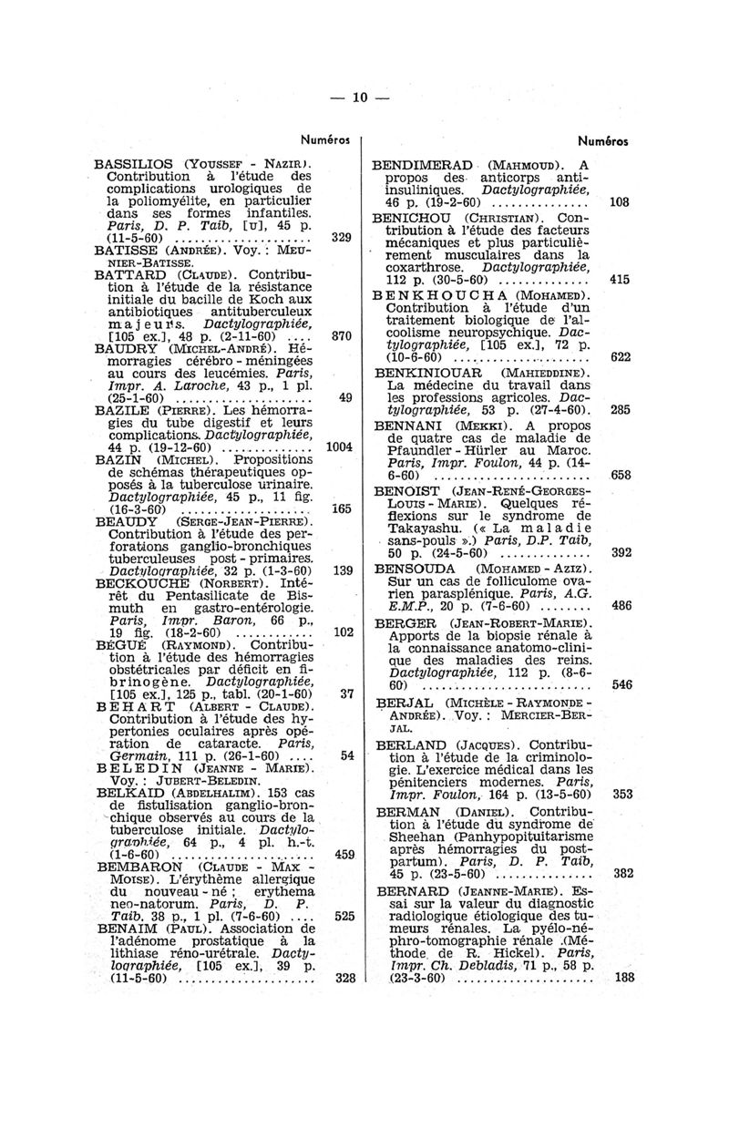 Tables des thèses soutenues devant la Faculté de médecine de Paris en 1960 publiées par les soins du Docteur André Hahn…, avec la collaboration de Mlle G. Le Noir…