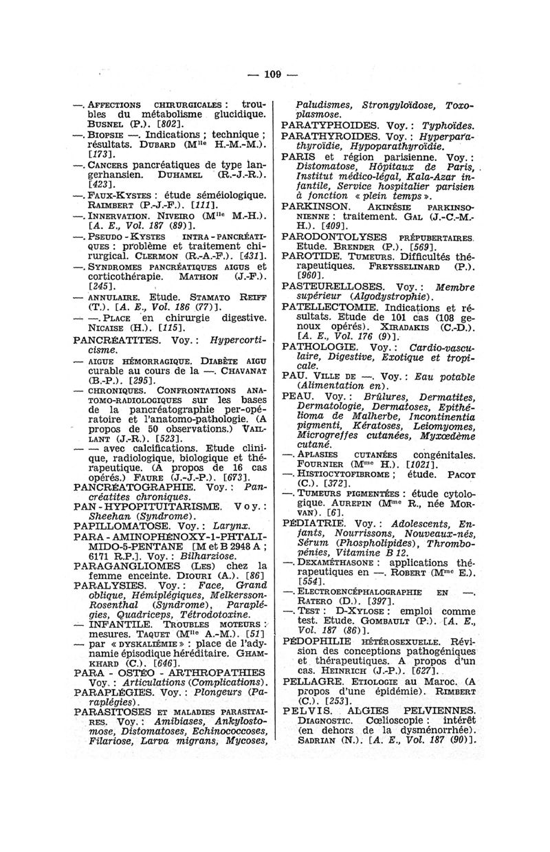 Tables des thèses soutenues devant la Faculté de médecine de Paris en 1960 publiées par les soins du Docteur André Hahn…, avec la collaboration de Mlle G. Le Noir…