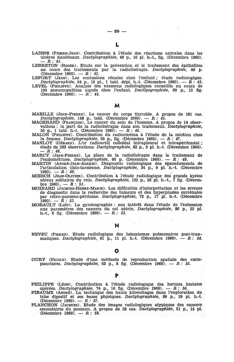 Tables des thèses soutenues devant la Faculté de médecine de Paris en 1960 publiées par les soins du Docteur André Hahn…, avec la collaboration de Mlle G. Le Noir…