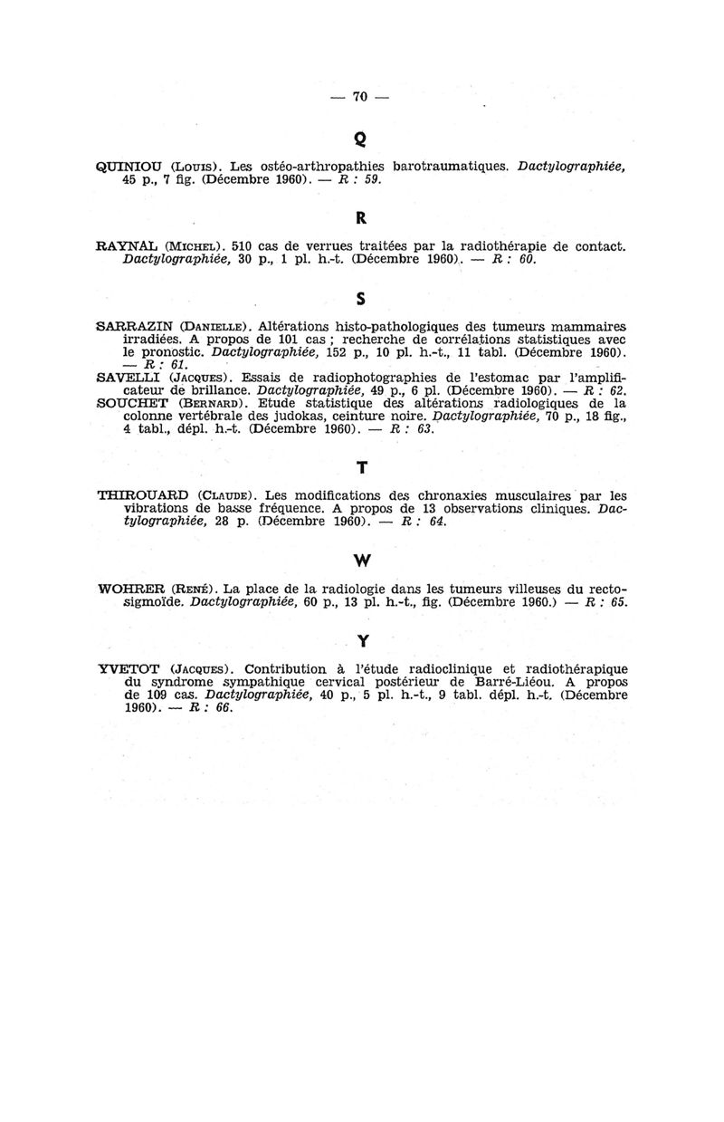 Tables des thèses soutenues devant la Faculté de médecine de Paris en 1960 publiées par les soins du Docteur André Hahn…, avec la collaboration de Mlle G. Le Noir…
