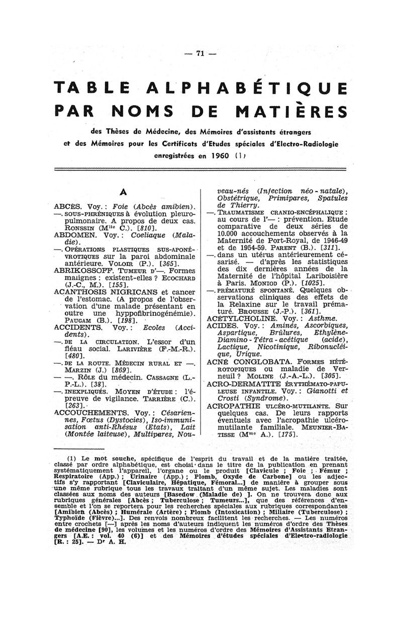 Tables des thèses soutenues devant la Faculté de médecine de Paris en 1960 publiées par les soins du Docteur André Hahn…, avec la collaboration de Mlle G. Le Noir…