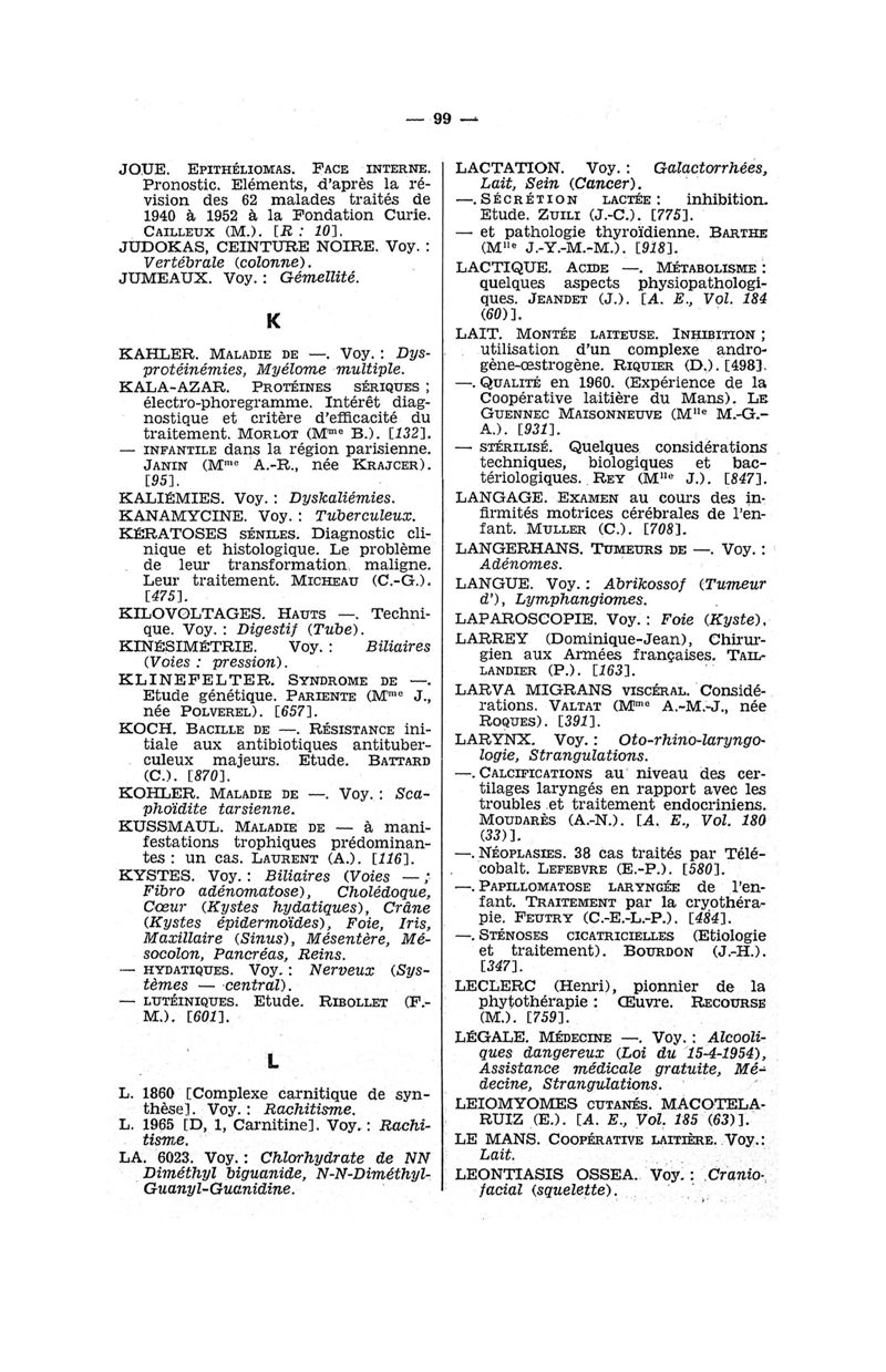 Tables des thèses soutenues devant la Faculté de médecine de Paris en 1960 publiées par les soins du Docteur André Hahn…, avec la collaboration de Mlle G. Le Noir…