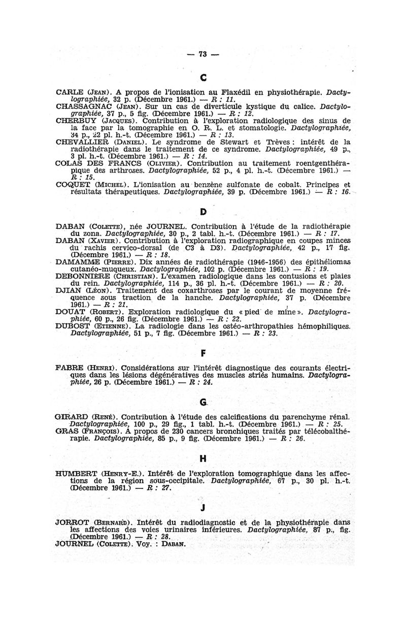 Tables des thèses soutenues devant la Faculté de médecine de Paris en 1961 publiées par les soins du Docteur André Hahn…, avec la collaboration de Mlle G. Le Noir…