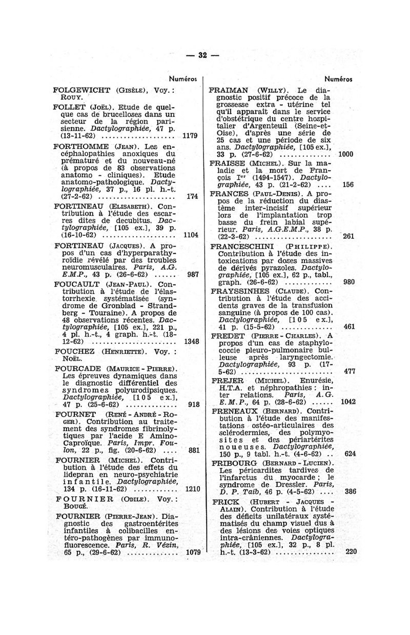 Tables des thèses soutenues devant la Faculté de médecine de Paris en 1962 publiées par les soins du Docteur André Hahn…, avec la collaboration de Mlle G. Le Noir…