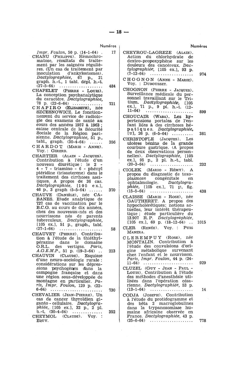 Tables des thèses soutenues devant la Faculté de médecine de Paris en 1964 publiées par les soins du Docteur André Hahn…, avec la collaboration de Mlle G. Le Noir…