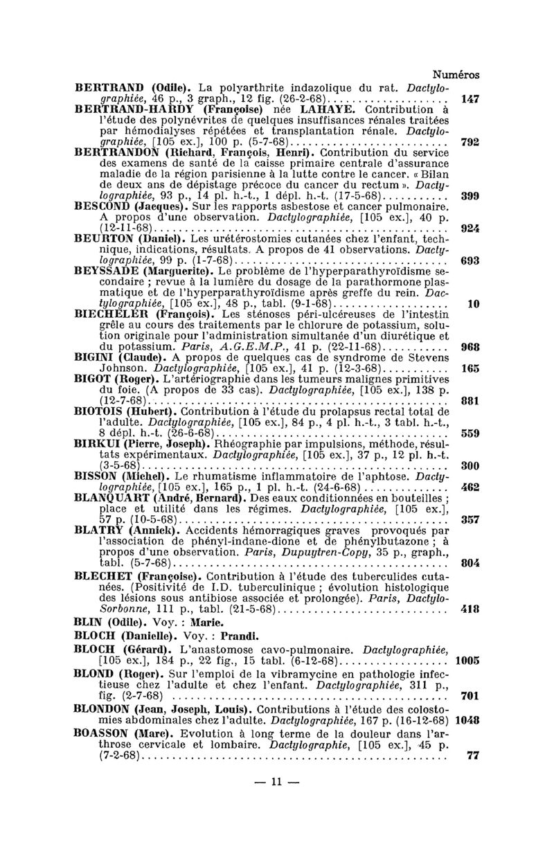 Tables des thèses soutenues devant la Faculté de médecine de Paris en 1968 publiées par les soins du Docteur André Hahn…, avec la collaboration de Mlle G. Le Noir…