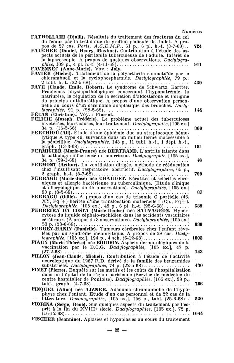 Tables des thèses soutenues devant la Faculté de médecine de Paris en 1968 publiées par les soins du Docteur André Hahn…, avec la collaboration de Mlle G. Le Noir…