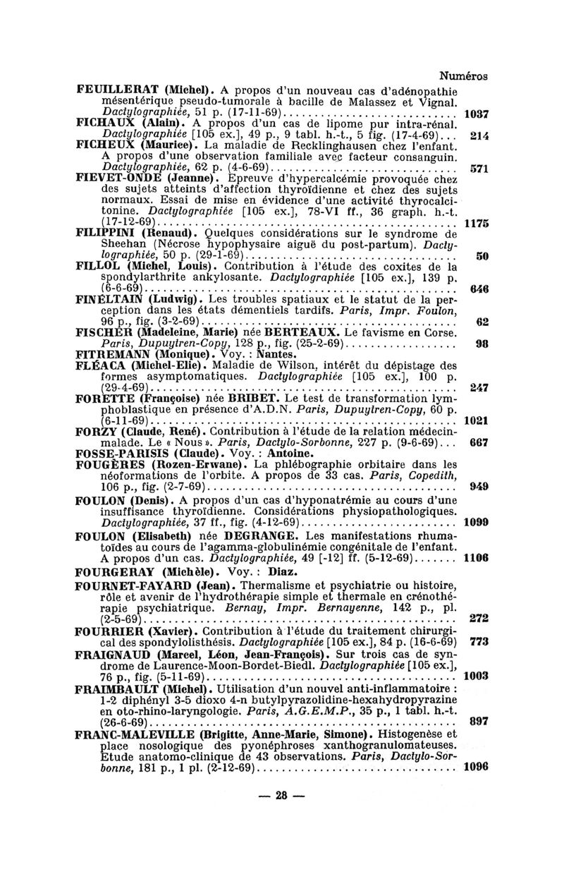 Tables des thèses soutenues devant la Faculté de médecine de Paris en 1969 publiées par les soins du Docteur André Hahn…, avec la collaboration de Mme Demanée…