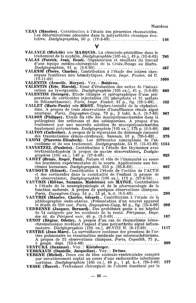 Tables des thèses soutenues devant la Faculté de médecine de Paris en 1969 publiées par les soins du Docteur André Hahn…, avec la collaboration de Mme Demanée…