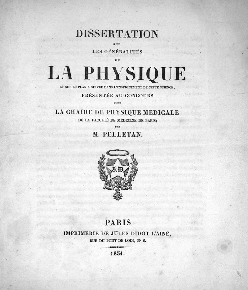 Thèse de concours pour la chaire de physique médicale de la faculté de médecine de Paris, 1831,