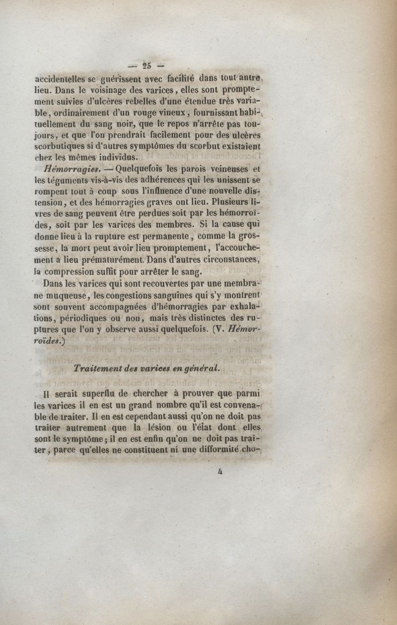 Des varices, de leur traitement