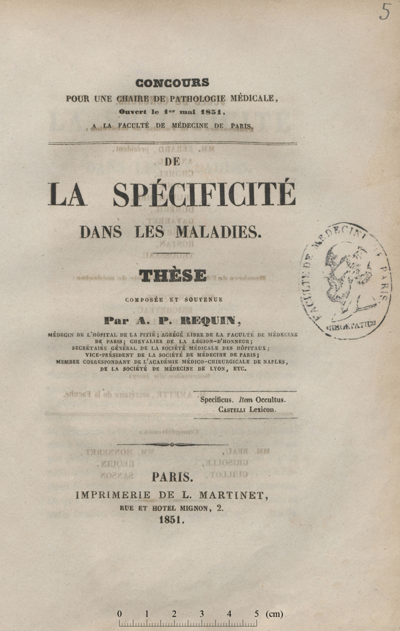 De la spécificité dans les maladies
