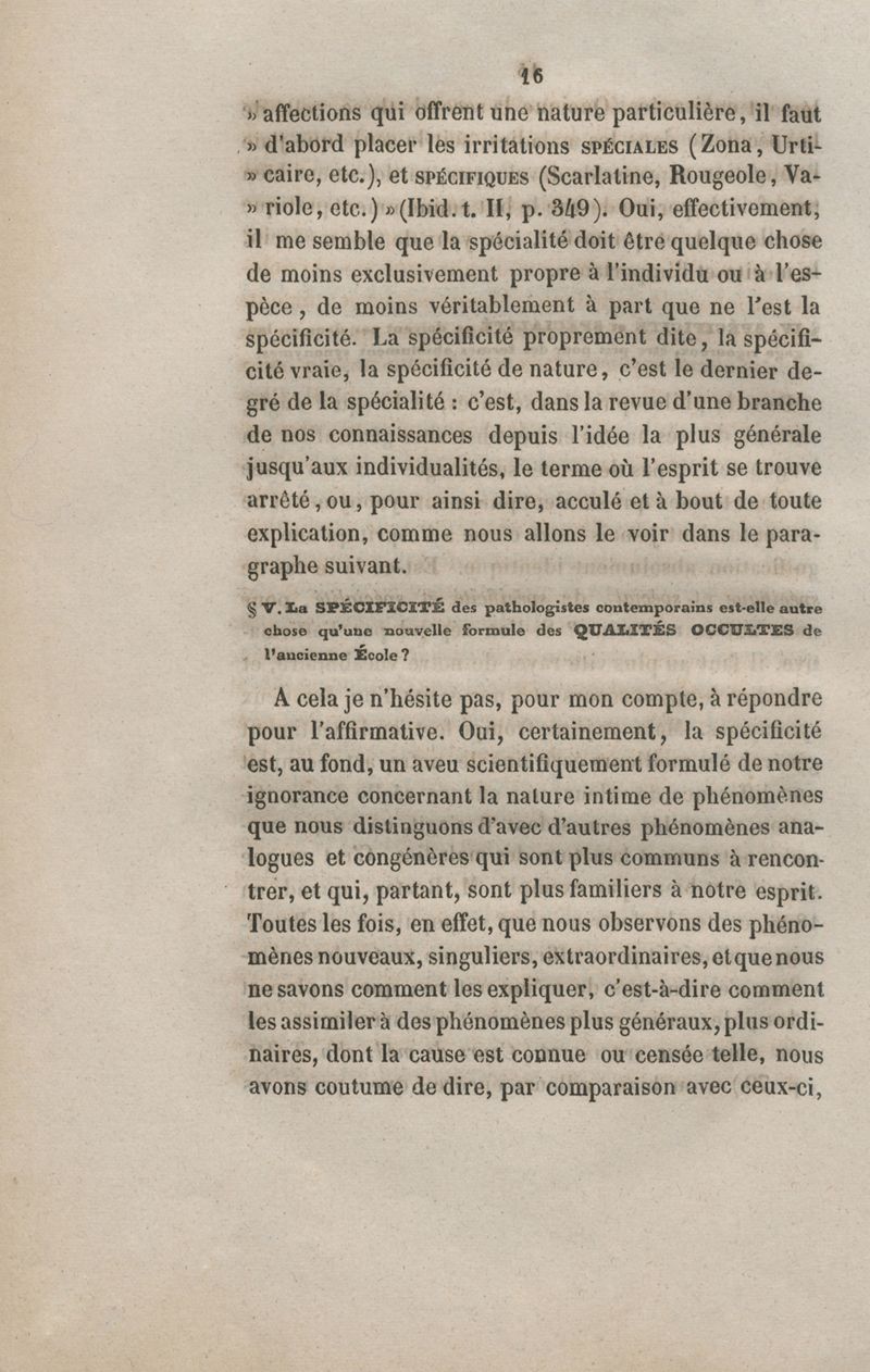 De la spécificité dans les maladies