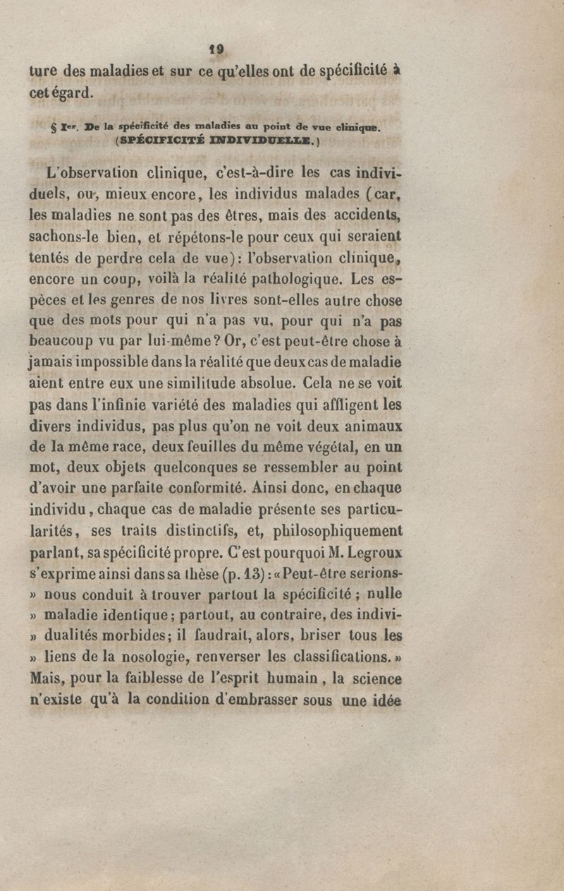 De la spécificité dans les maladies