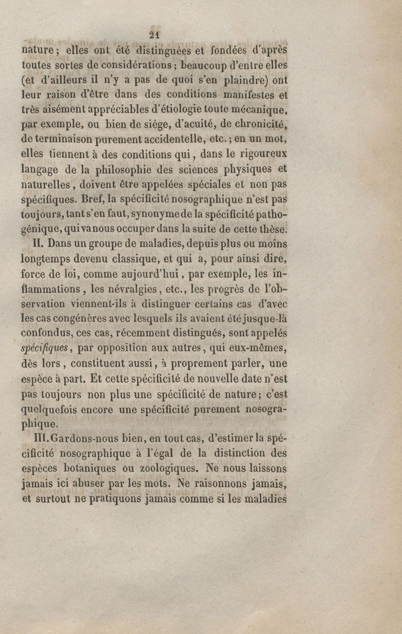 De la spécificité dans les maladies