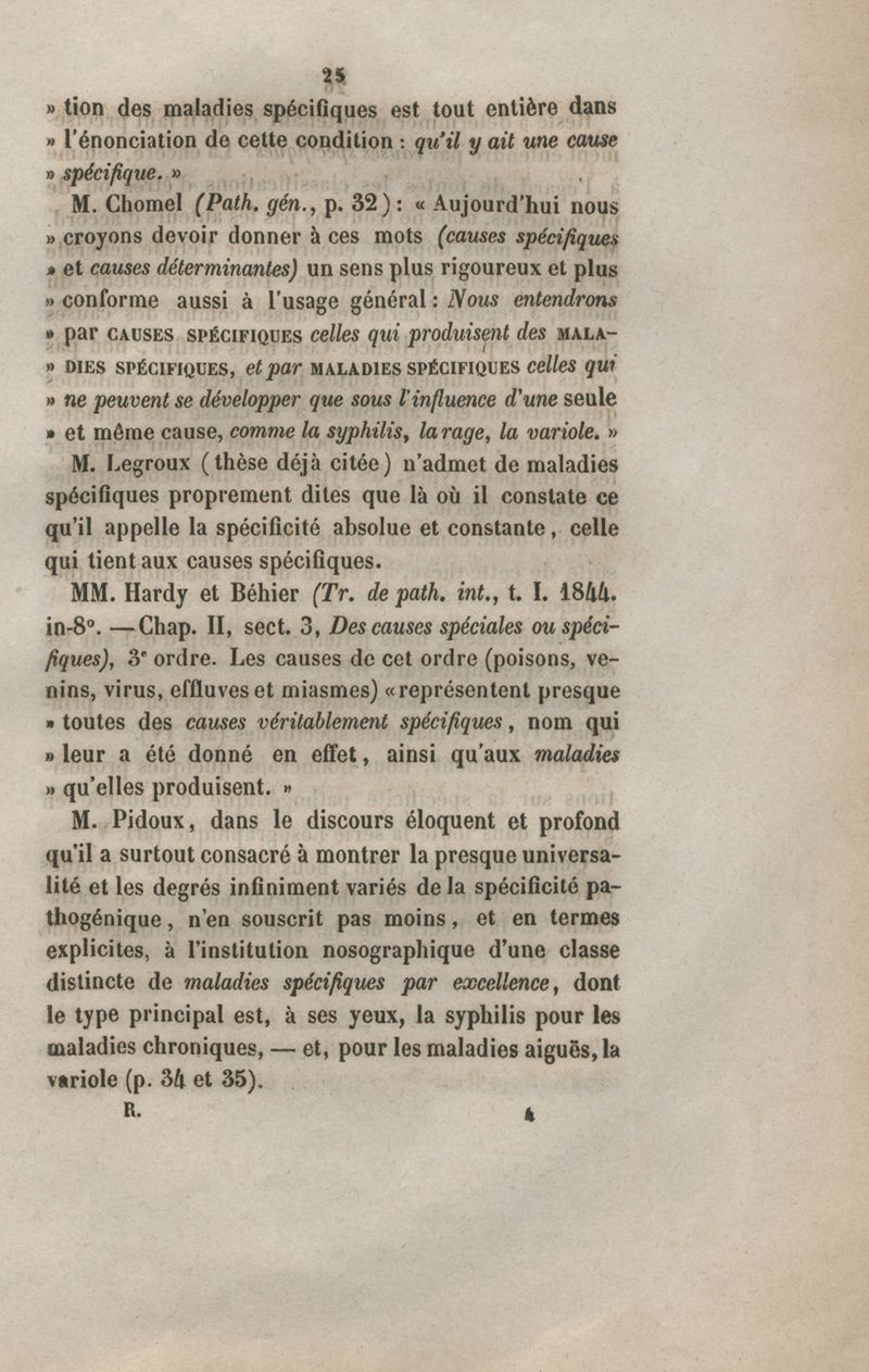 De la spécificité dans les maladies