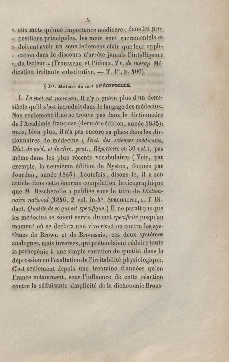 De la spécificité dans les maladies