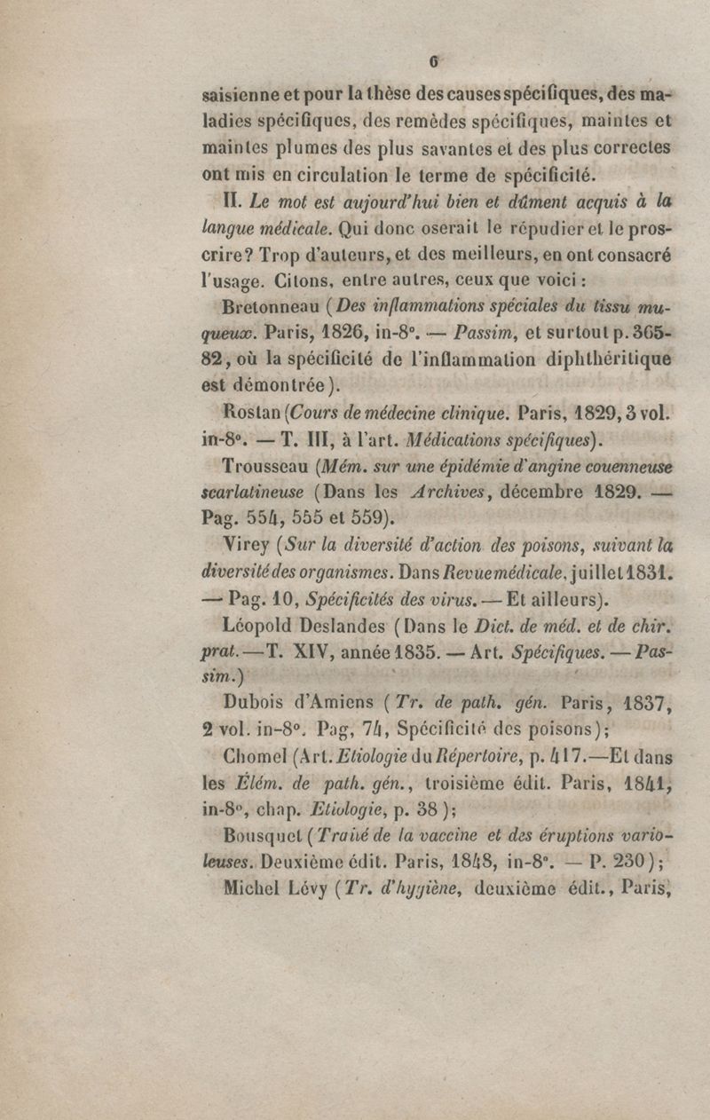 De la spécificité dans les maladies