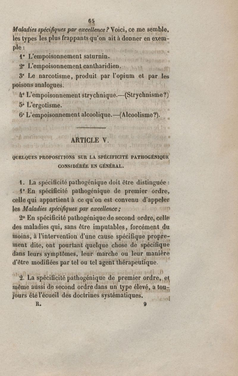 De la spécificité dans les maladies