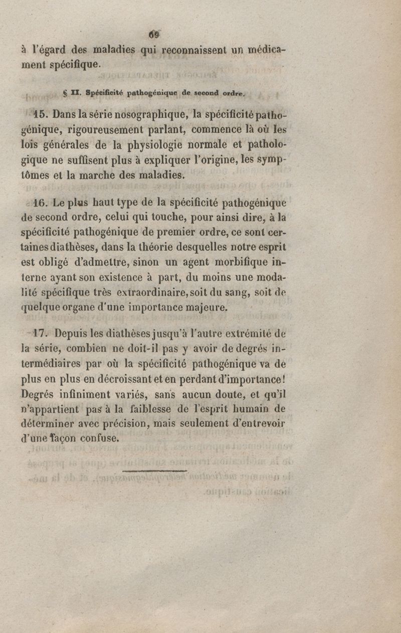 De la spécificité dans les maladies