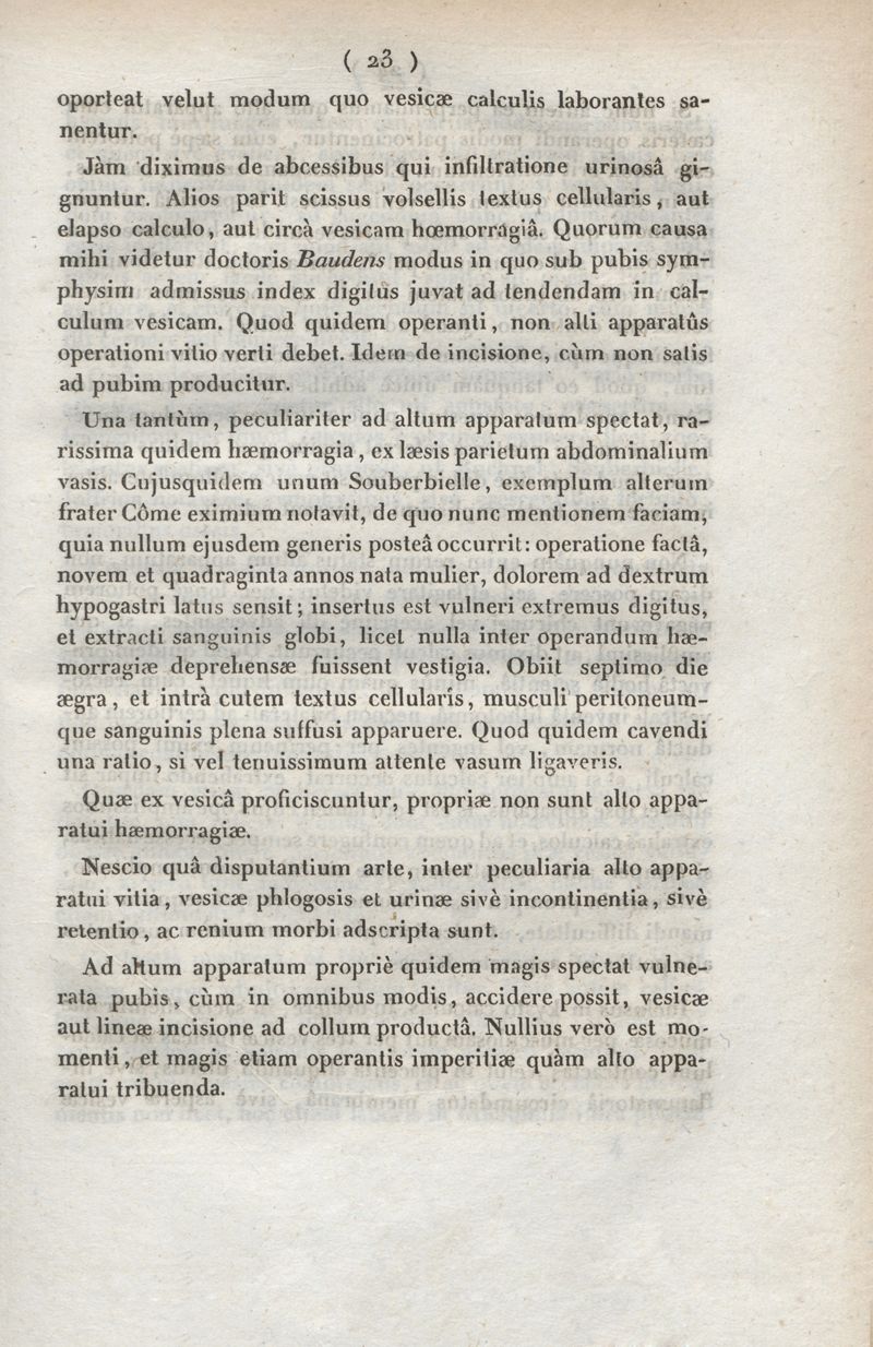 De lithotomia supra pubem instituenda