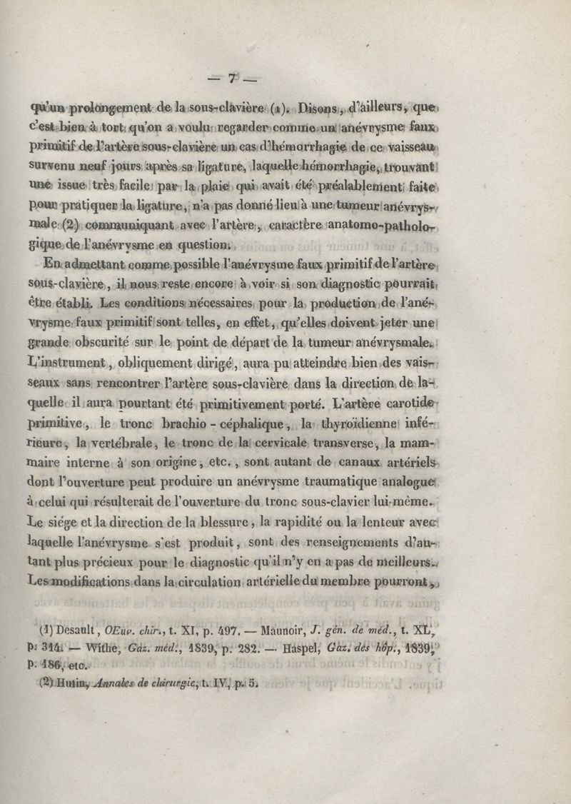 De l'anévrysme de l'artère sous-clavière