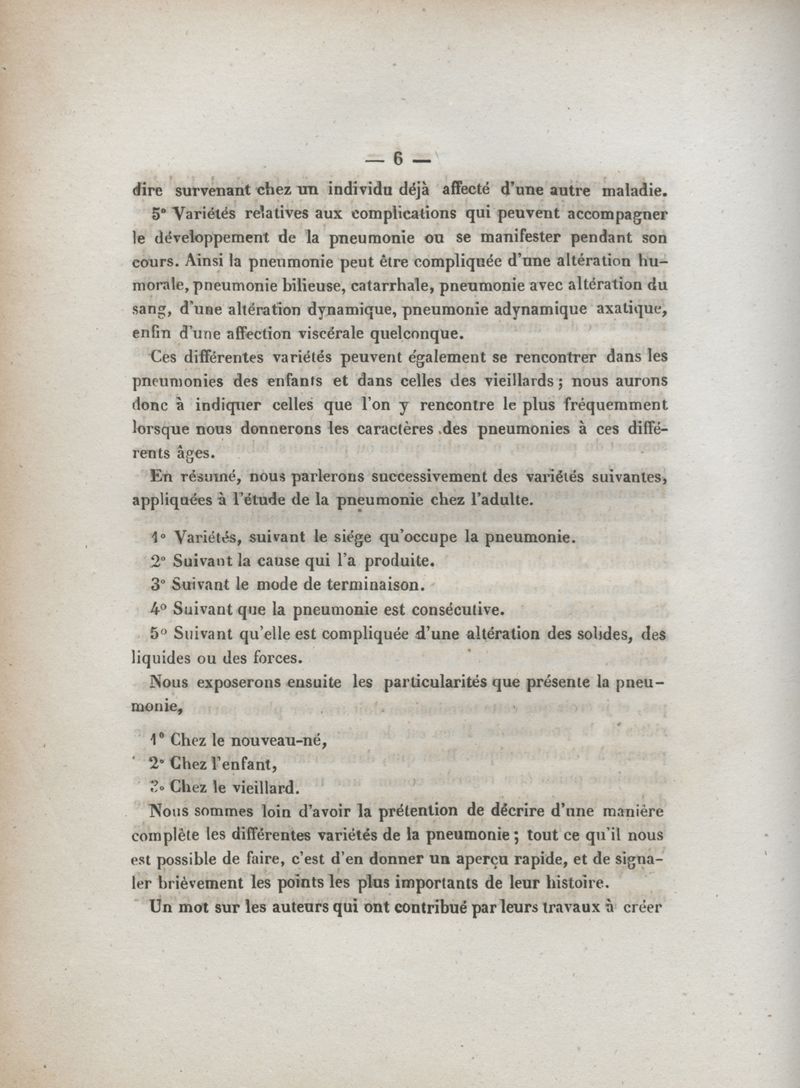 Des différentes variétés de la pneumonie