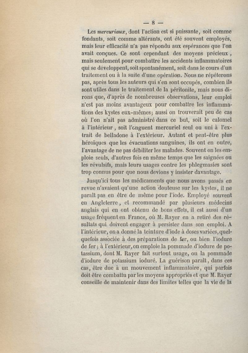 Du traitement des kystes de l'ovaire