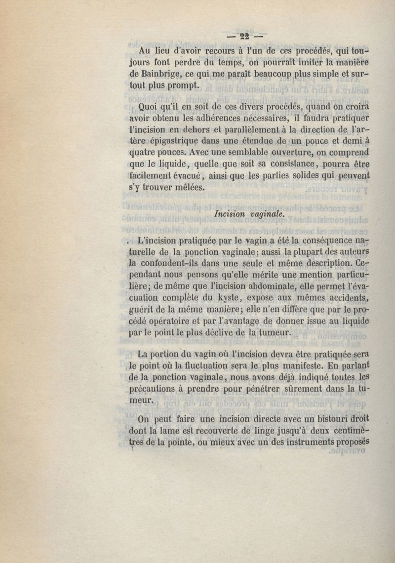 Du traitement des kystes de l'ovaire