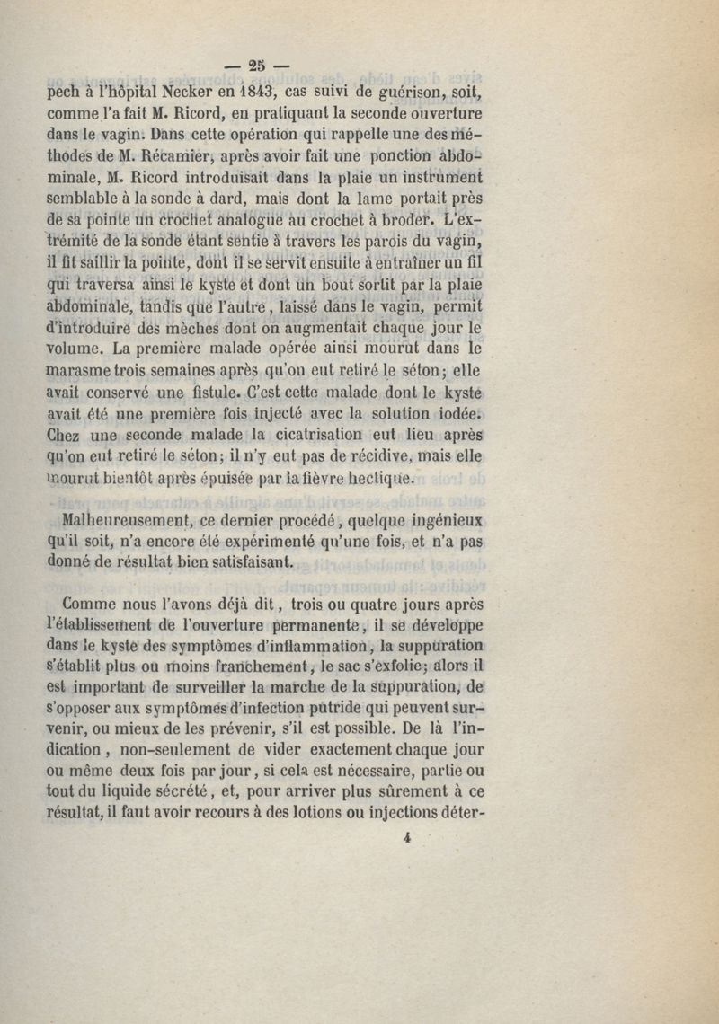 Du traitement des kystes de l'ovaire