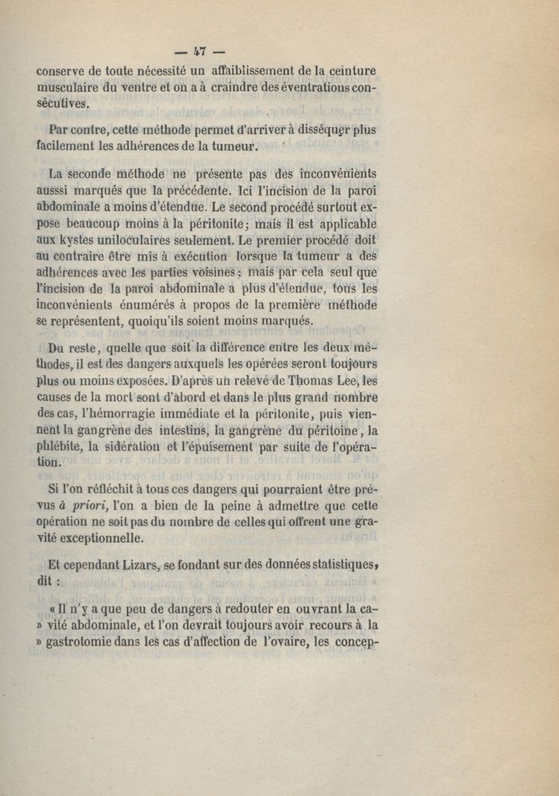 Du traitement des kystes de l'ovaire
