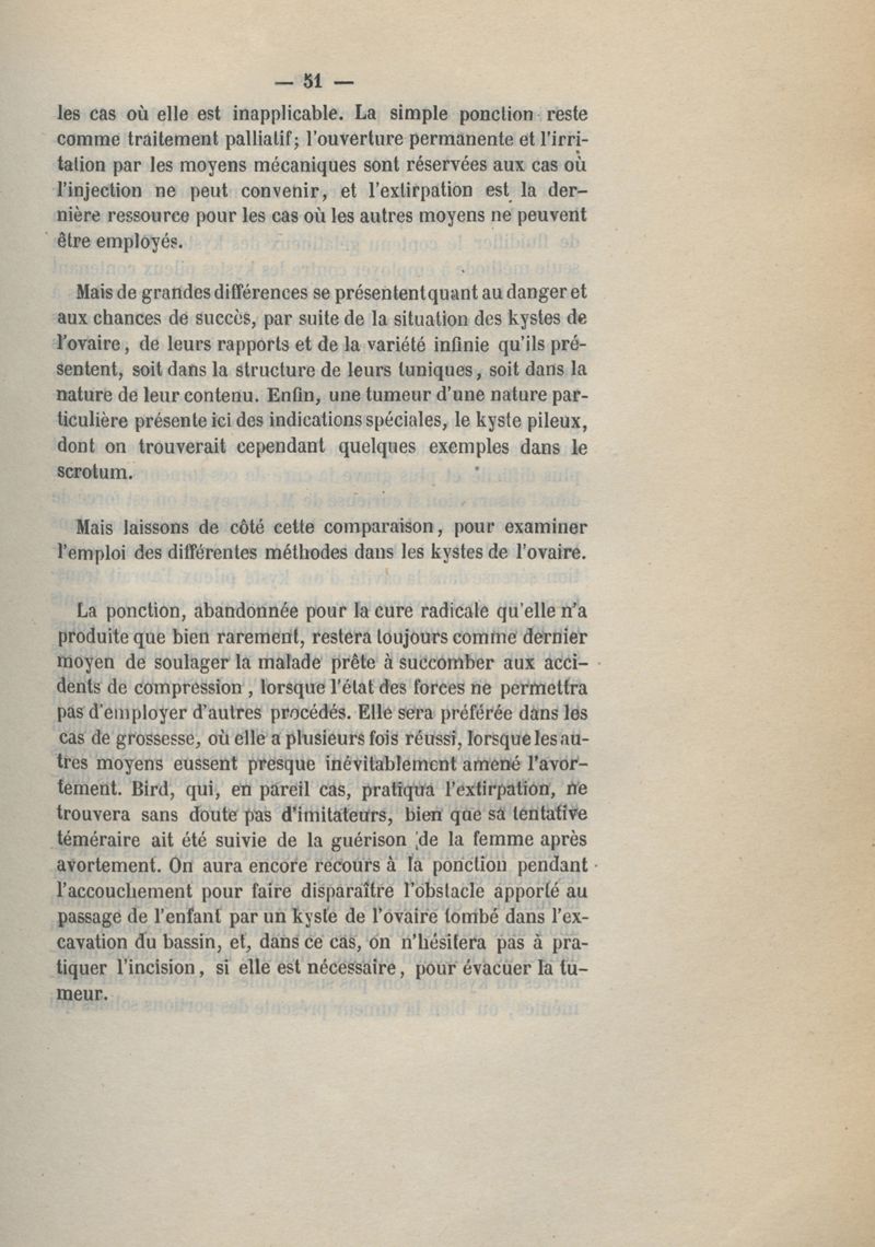 Du traitement des kystes de l'ovaire