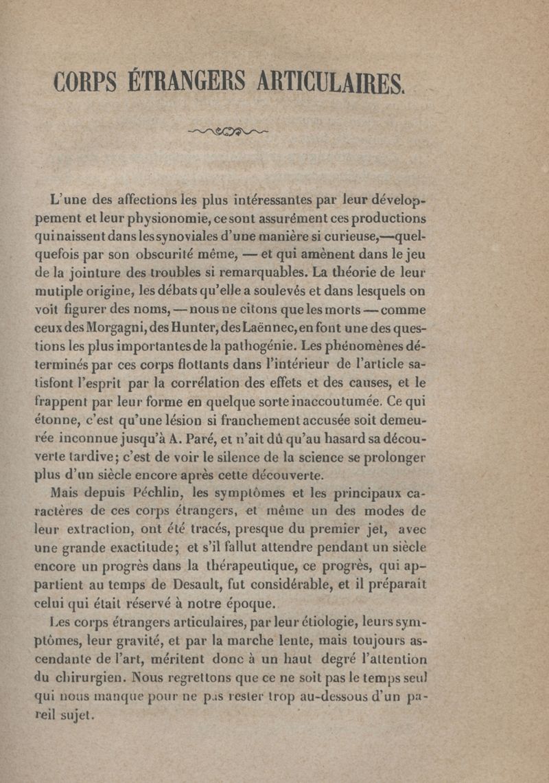 Thèse sur les corps étrangers articulaires