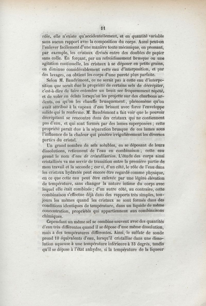 Du rôle de l'eau dans les phénomènes chimiques